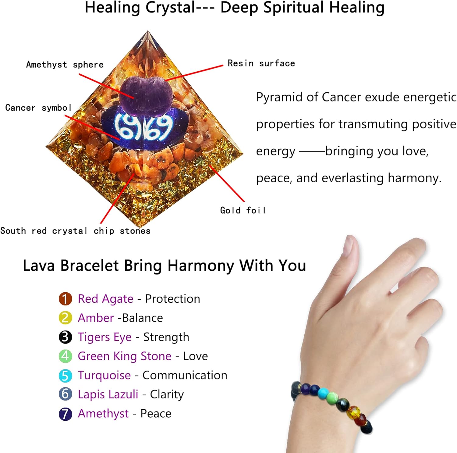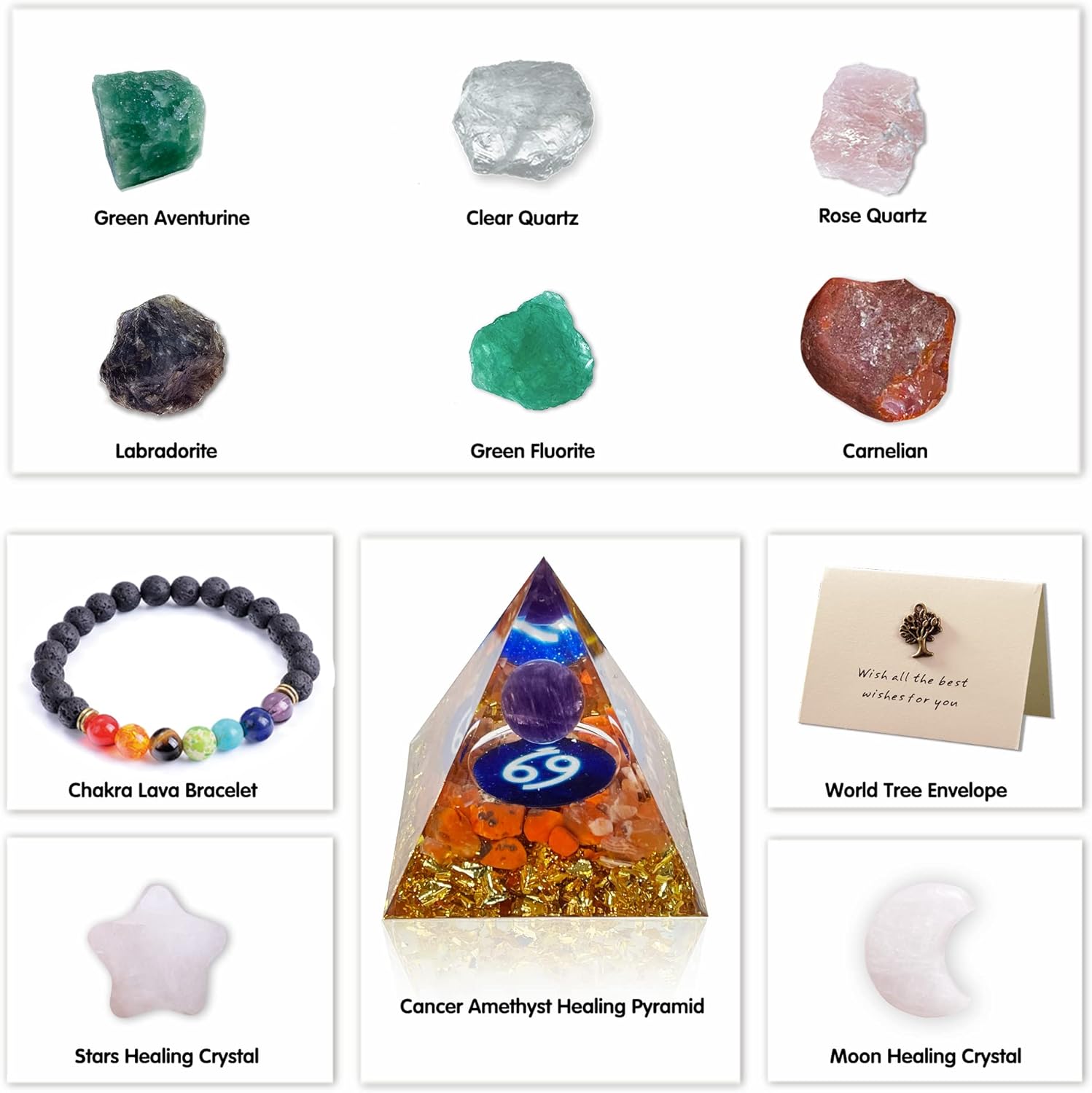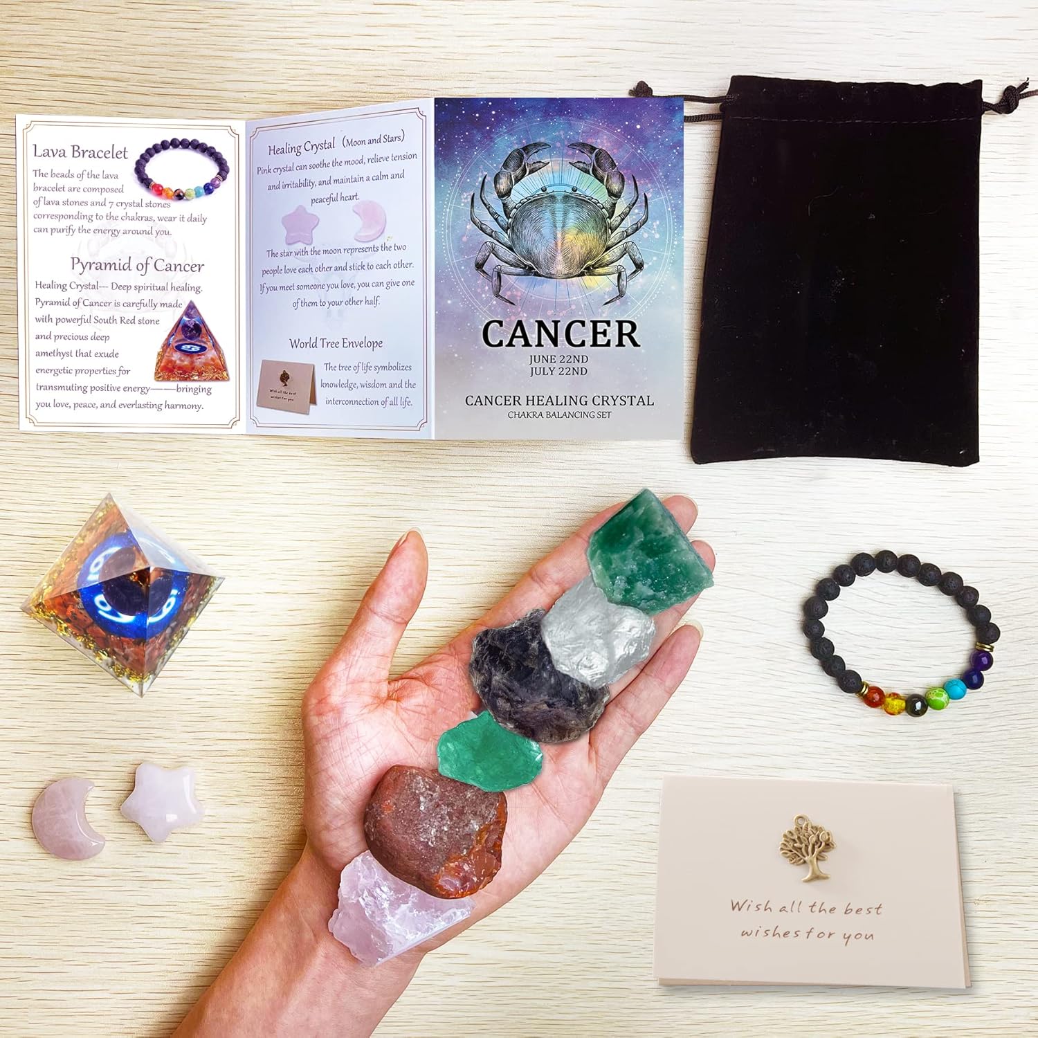 PREMIUM HEALING CRYSTALS SET: Each star sign has a corresponding crystal stone, enhance your body, mind, and spirit, a carefully curated cancer zodiac crystal collection. Includes 8 crystals and stones, chakra bracelet, cancer orgone pyramid, small tree envelope, crystals and healing stones set detailed introduction.