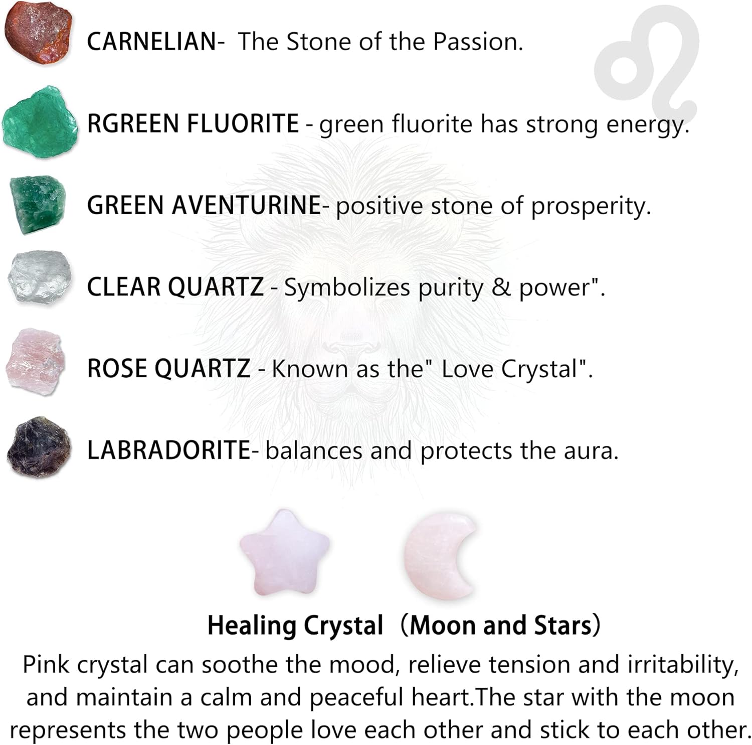 RESONATE CRYSTALS AND HEALING STONES WITH CANCER: 6Pcs crystals stones highly resonated with The cancer zodiac sign – Rose Quartz, Clear Quartz, Green Aventurine, Carnelian, Labradorite, Green Fluorite. 2Pcs pink crystal can soothe the mood, relieve tension and irritability, and maintain a calm and peaceful heart.