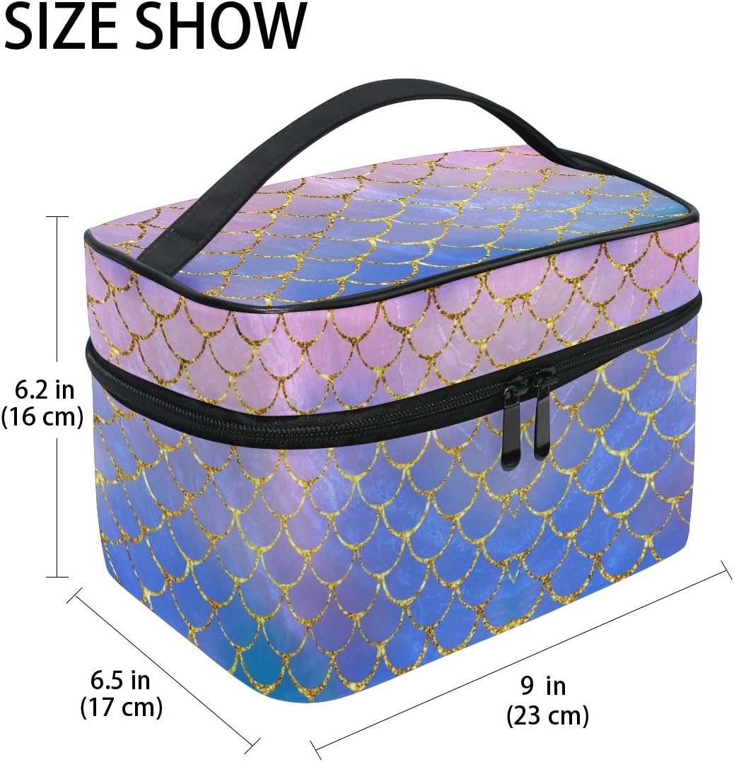ZOEO Makeup Train Case Purple Mermaid Scales Marble Fish Light Summer Gold Korean Carrying Portable Zip Travel Cosmetic Brush Bag Organizer Large White Elephant Gift for Girls Women