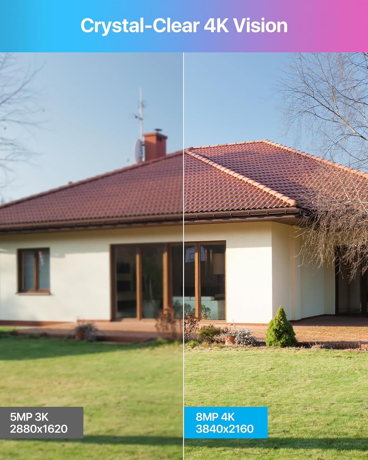 4K, Upgraded AI Detection, Light & Sound Alarm, Two-Way Audio, Starlight Color Night Vision.