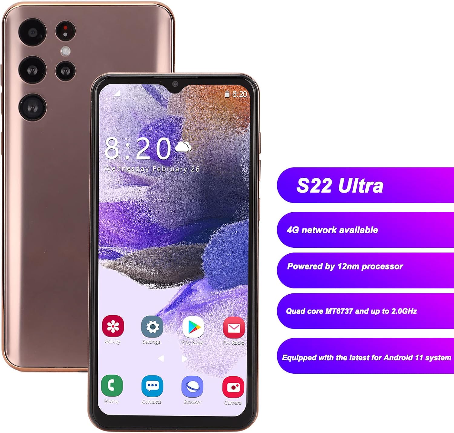 Zunate S22 Ultra 4G Unlocked Smartphone for Android 11, 6.52in Ultra HD Screen 4GB 64GB ROM WiFi Face Unlock Mobile Phone with 4000mAh Battery 8MP 16MP Dual Camera (Gold)