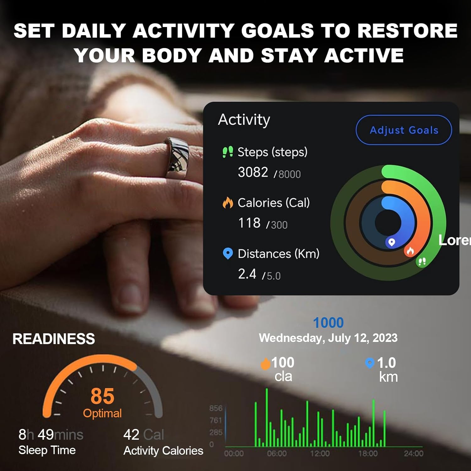 【Fitness Tracking Ring】 The ring continuously tracks and records your physical vigor throughout the day. Record your exercise heart rate, steps and exercise data as you perform sports and fitness workouts. Calories Burned.