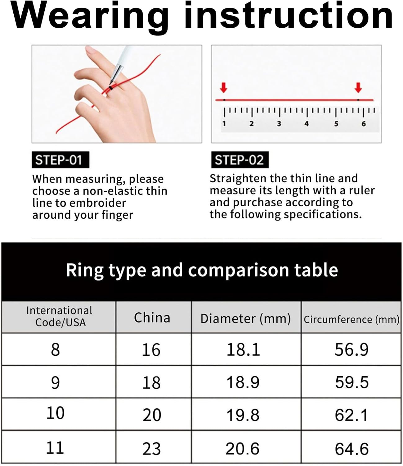 Start by finding a piece of non-elastic string and wrapping it around your finger where you want the ring to fit. Mark the intersection points with a pen and straighten the thin lines. Use a ruler to measure the length of the thin line between two points, and then choose to purchase according to the size chart.