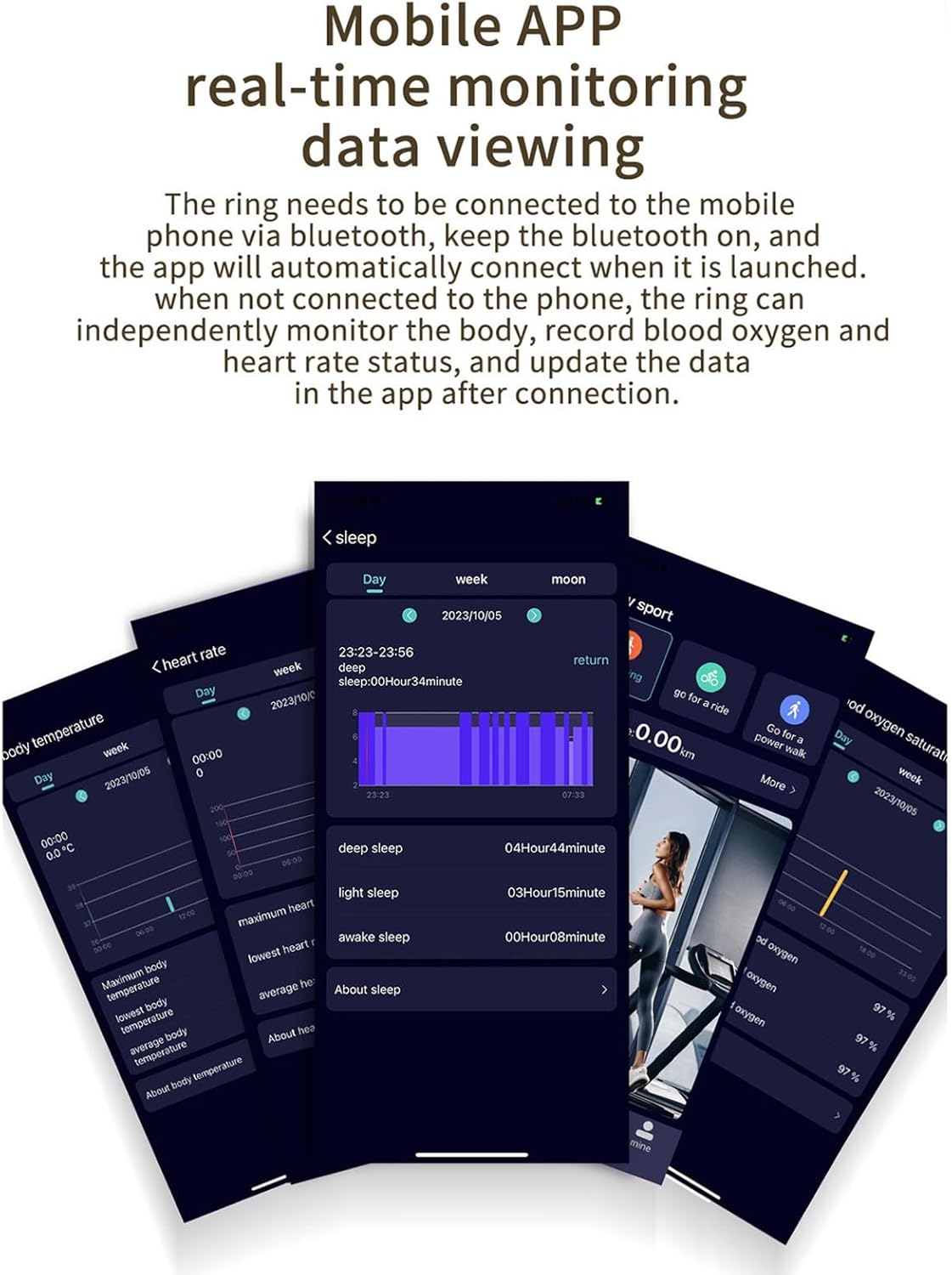 đ´ăSleep tracker Ring For Men And Womenă: The smart ring health tracker is designed to automatically track your sleep patterns, providing valuable data about your rest time. Provides detailed insights into your sleep duration, quality and sleep stages, allowing you to inform decisions about your sleep habits and overall health.