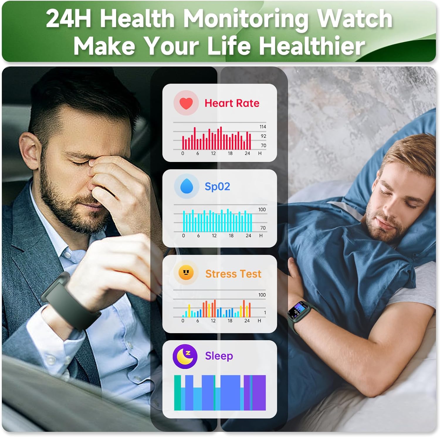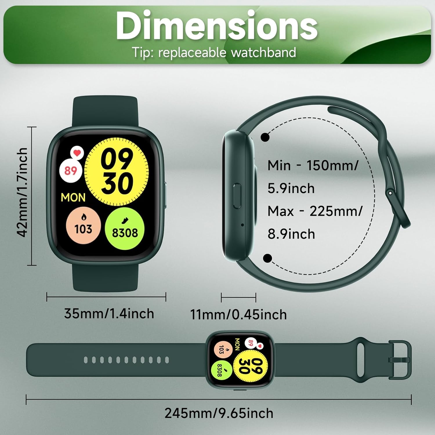 [1.83” DIY Screen & Multifunctional Watch] 1.83″ HD touch screen digital watch provides a clearer and more comfortable visual experience. More than 100 kinds of dials for you to choose from, you can even customize your watch dail according to your mood and dressing. The fitness tracker watch has a lot of useful functions such as alarm clock, stopwatch, music/camera control, weather, torch, locate your phone and more.