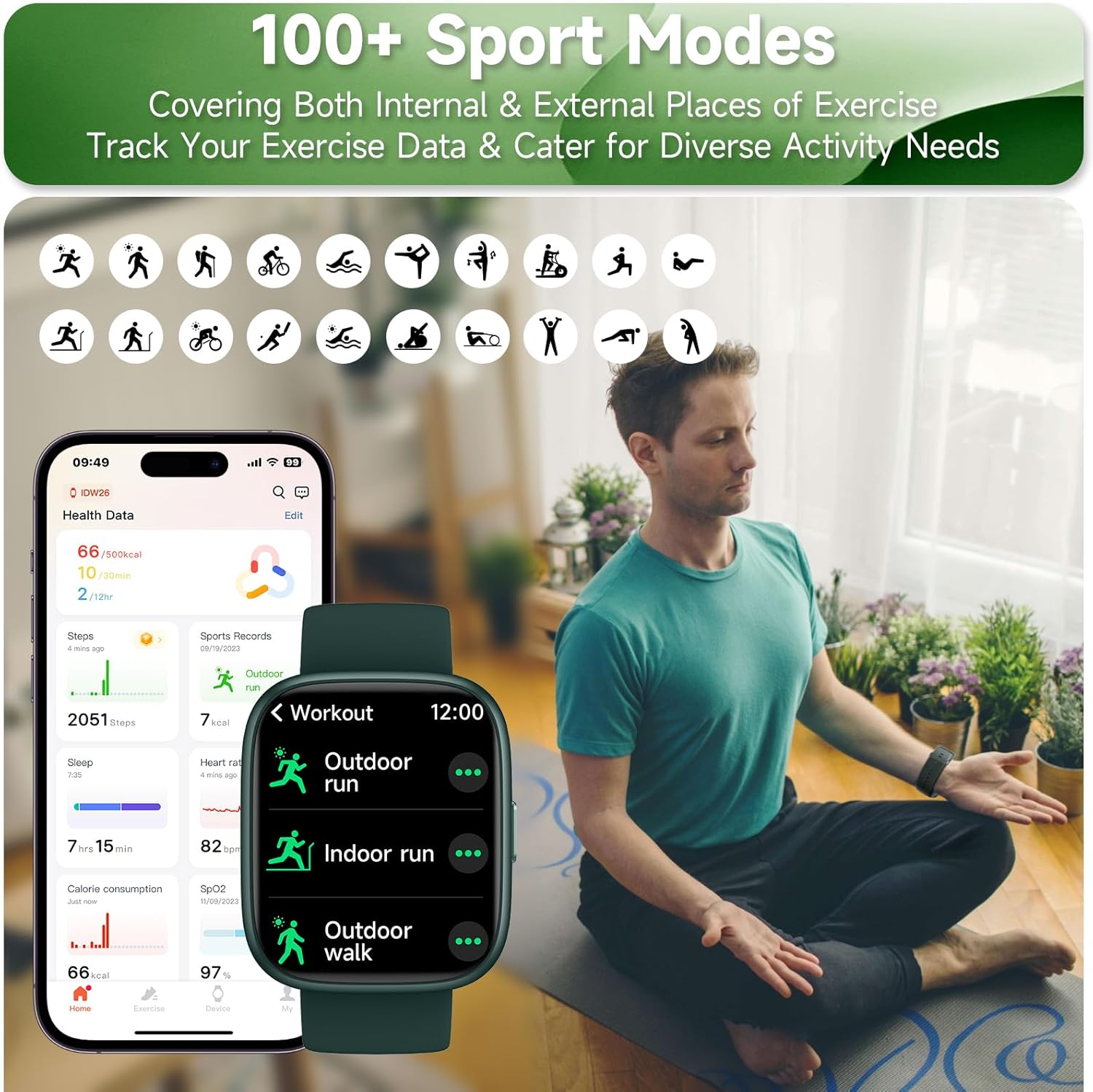 [IP68 Waterproof & 100+ Sports Fitness Tracker] Faweio smartwatch supports more than 100 sports modes, such as walking, running, climbing, cycling, swimming, plank, yoga, boxing and golf, recording your workout including calories burned, steps, distance, and workout time, generate reports after your exercising. With IP68 waterproof rating, this fitness wrist watch enables you to use this smartwatch casually, even you swim, wash your hands or exercise when it rains.