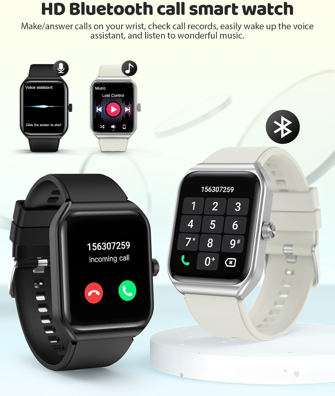 【Superior Calling Experience & Intelligent Voice Assistant】- One-touch seamless call answering and dialing, enhanced with high-definition voice quality for effective communication and a smooth calling experience. You can easily view call logs, use the voice assistant for hands-free assistance, listen to music, check weather forecasts, find your phone, and even take remote photos. The watch can receive various message notifications, ensuring that you stay informed and connected at all times. These multifunctional features enrich your daily life, providing convenience and entertainment, making it an indispensable versatile companion that meets all your needs.