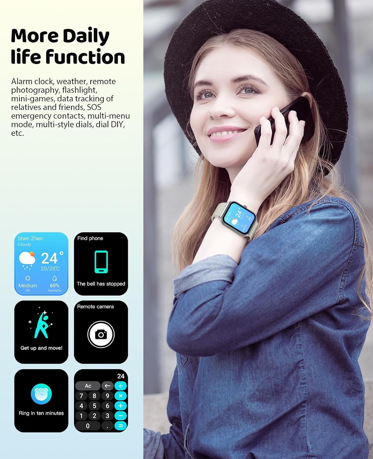 【Better Performance】- The 1.91-inch 240*284 high-definition full-touch screen expands your field of view and ensures smooth operation. With over 100 customizable watch faces to choose from, you can personalize it to your liking. By adding family members’ data through the app, you can care for their physical well-being. The watch has been upgraded to Bluetooth 5.2 and supports Android 4.4+ & iOS 9.0+.