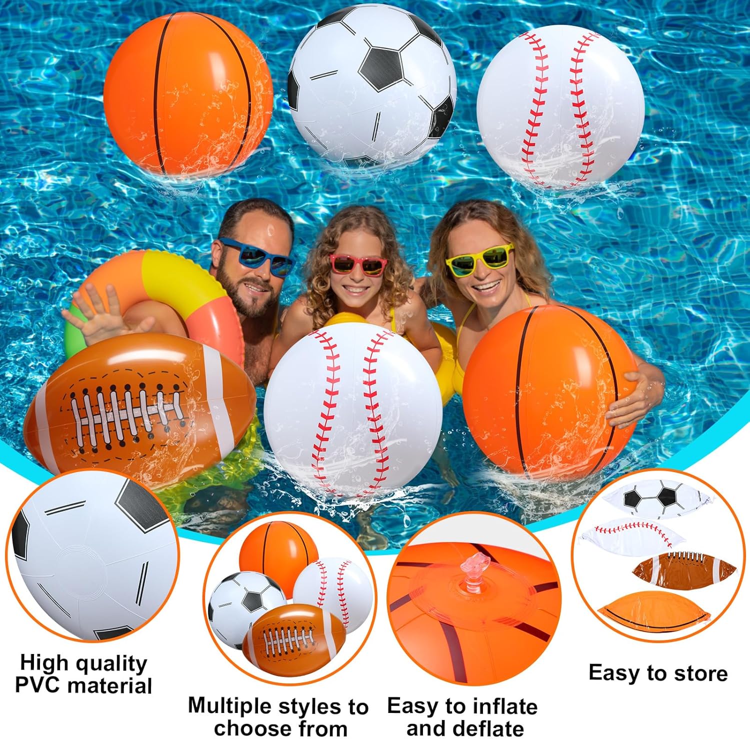 Nice and Practical Gifts: the large inflatable sports balls are designed with 4 different styles, including football, baseball, basketball and soccer, vivid and funny, they can be applied as nice and utility gifts for your families