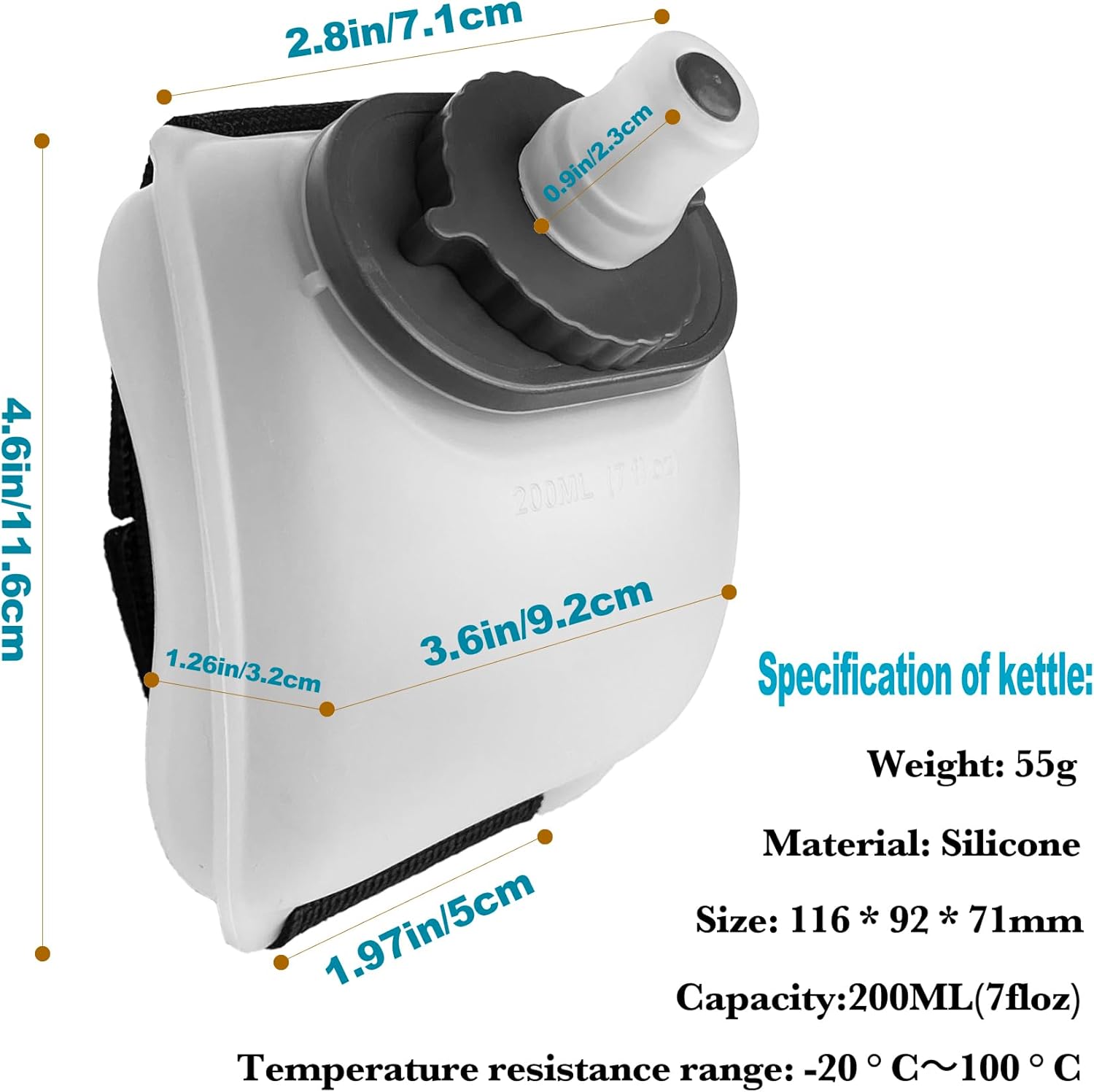 ✔️ Size: The portable wrist strap water bottle is approximately 4.6 inches * 2.8 inches/11.6 cm * 7.1 cm in size. It is heat-resistant to temperatures ranging from -4 ° F to 212 ° F (-20 ° C to 100 ° C).