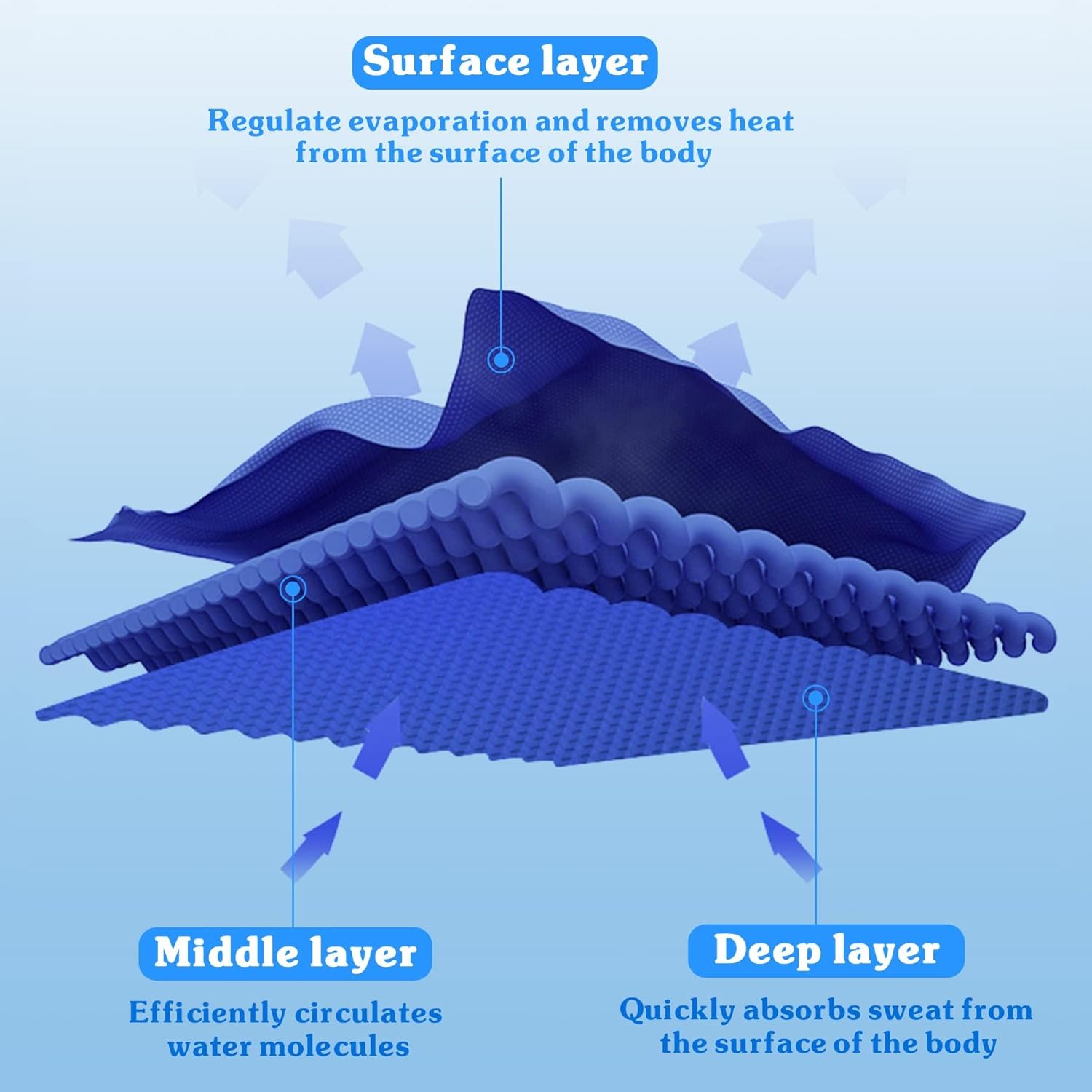 High efficiency air permeability: High quality cooling fabric with high efficiency air permeability, fiber internal water circulation, accelerate the surface water evaporation,take away the heat.