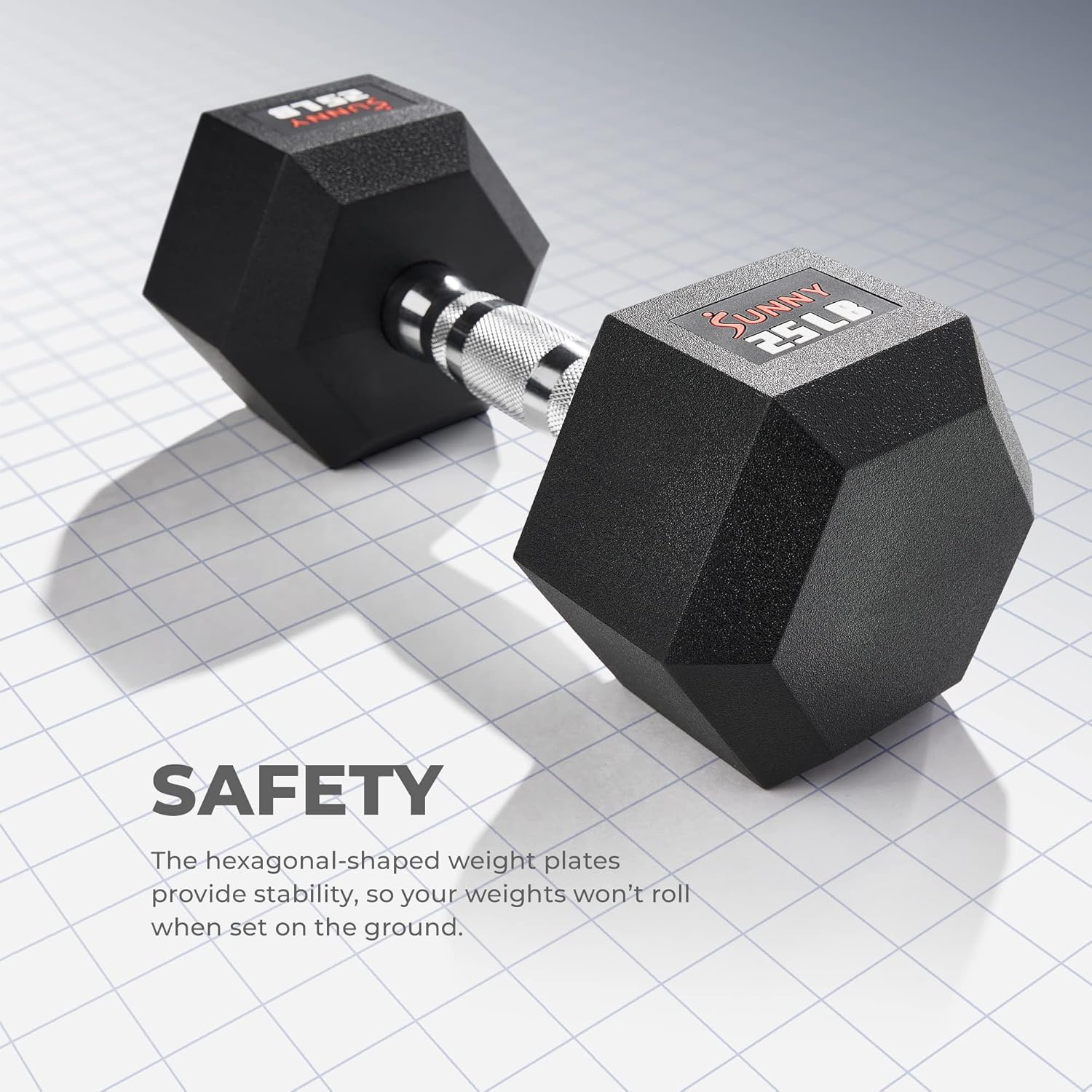 SAFETY: The hexagonal-shaped weight plates provide stability, so your weights won’t roll when set on the ground. This is ideal for safety when not in use, but also for dumbbell exercises that require you to place your body weight over the dumbbells.
