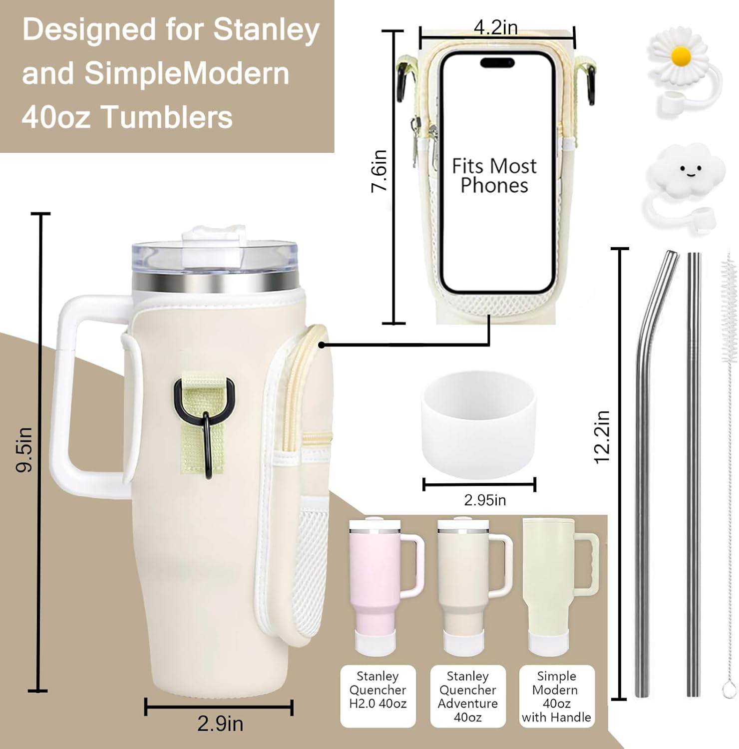 🥤【The perfect accessory for Stanley cup】:This water bottle bag with shoulder strap is designed for the Stanley Quencher H2.0 40 oz and Stanley Adventure Quencher 40 oz mugs. Our water bottle carrier bag 40 oz stanley with 2 stainless steel straws, stanley boot, 2 straw lids, and a straw brush for all your everyday needs. This stylish water bottle pouch holds your beverage securely in place for easy portability and won’t let any water or spills get on your clothes.