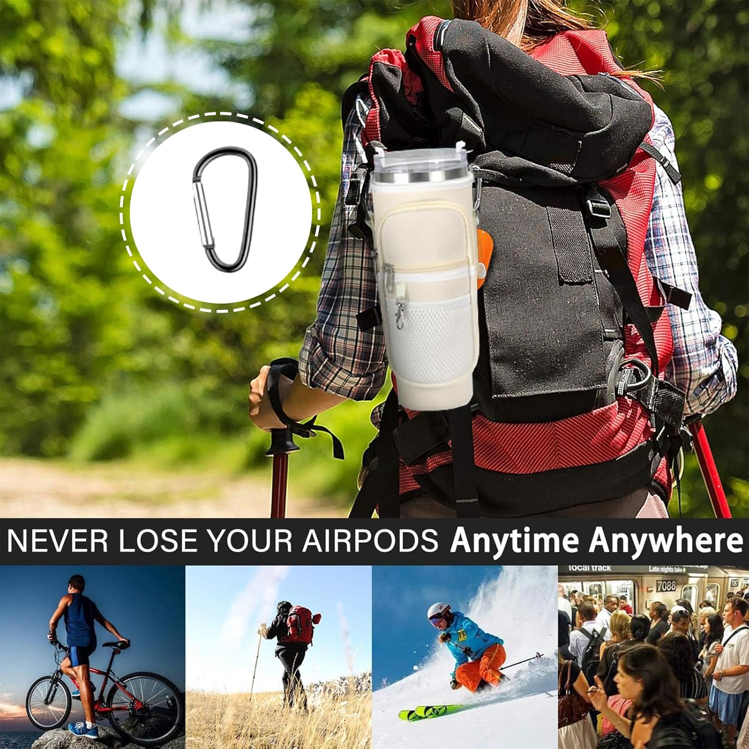 🥤【With 2 adjustable straps & metal hook】: This stanley backpack with two different shoulder straps, one is smaller and can be carried as a handbag, and the other is adjustable and can be carried over the shoulder or across the body. Our water bottle accessories also has three extra pockets, a small pocket for cash, ID or debit card, a large pocket for snacks and cell phone, and a mesh pocket for bluetooth headphones, cards and more. And it comes with a metal hook and loop for hanging keys.