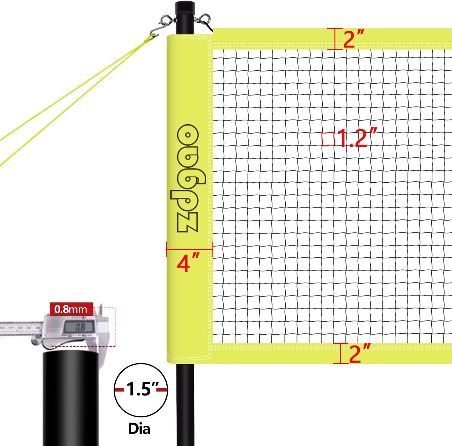 π Durable and steady for use, with 1.6β diameter poles with powder-coated for all weather-resistance, the net is in regulation volleyball size (32x3ft), and the sleeve of the net is double sewed for durability. Different with other 18-ply mesh net, this badminton & volleyball combo set is 24-ply material, which could withstand thousands hits of the volleyball.